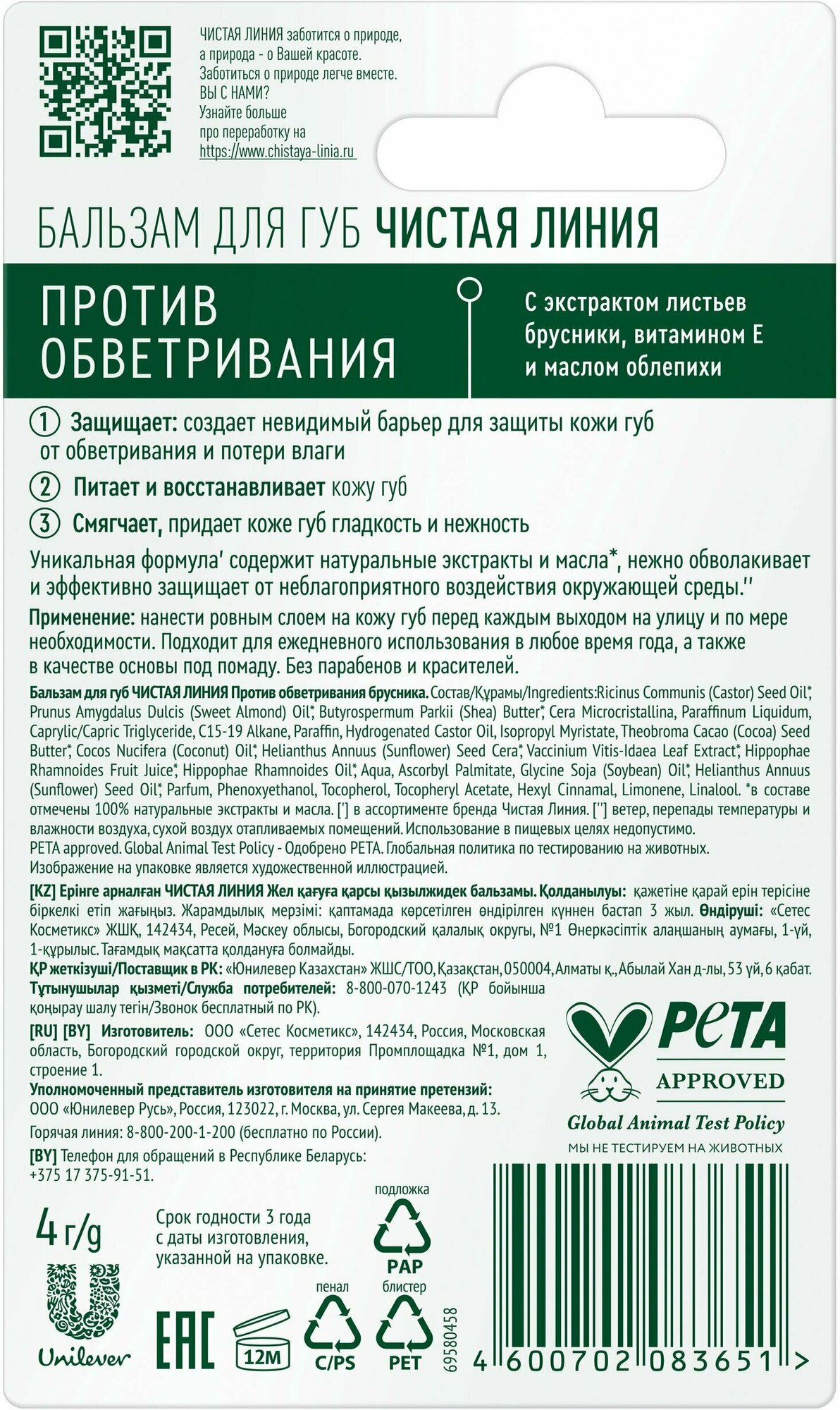 Купить Бальзам для губ Чистая линия «Брусника», против обветривания, 4 г, 3 шт. с доставкой по всей России. Бальзам для губ Чистая линия «Брусника», против обветривания, 4 г, 3 шт.: сравнение цен, характеристики, фото, актуальное наличие и цены.