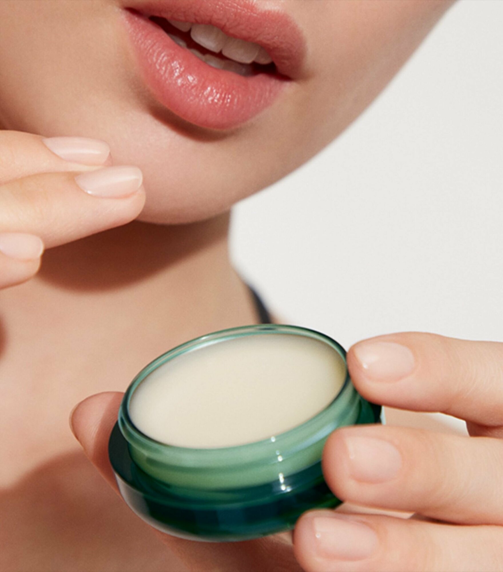Согрейте немного бальзама на кончике пальца и нанесите легкими похлопывающими движениями. Наносите под помаду, чтобы надолго успокоить кожу губ.