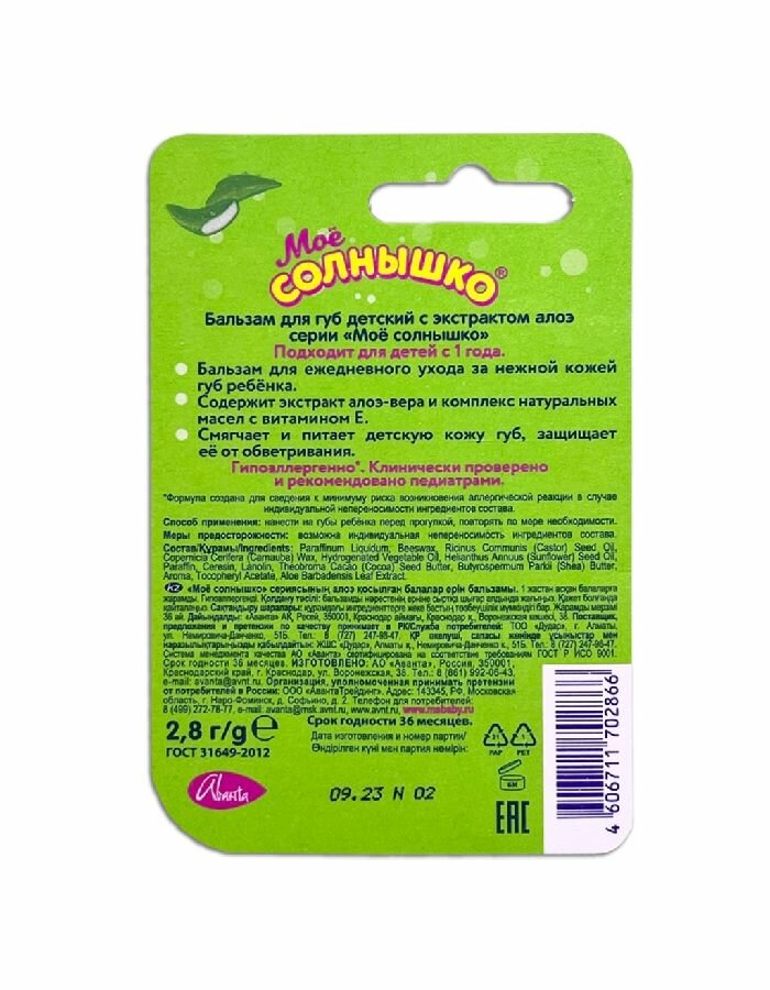 Купить Бальзам для губ Мое Солнышко с алоэ вера, 2.8 г, 6 шт с доставкой по всей России. Бальзам для губ Мое Солнышко с алоэ вера, 2.8 г, 6 шт: сравнение цен, характеристики, фото, актуальное наличие и цены.