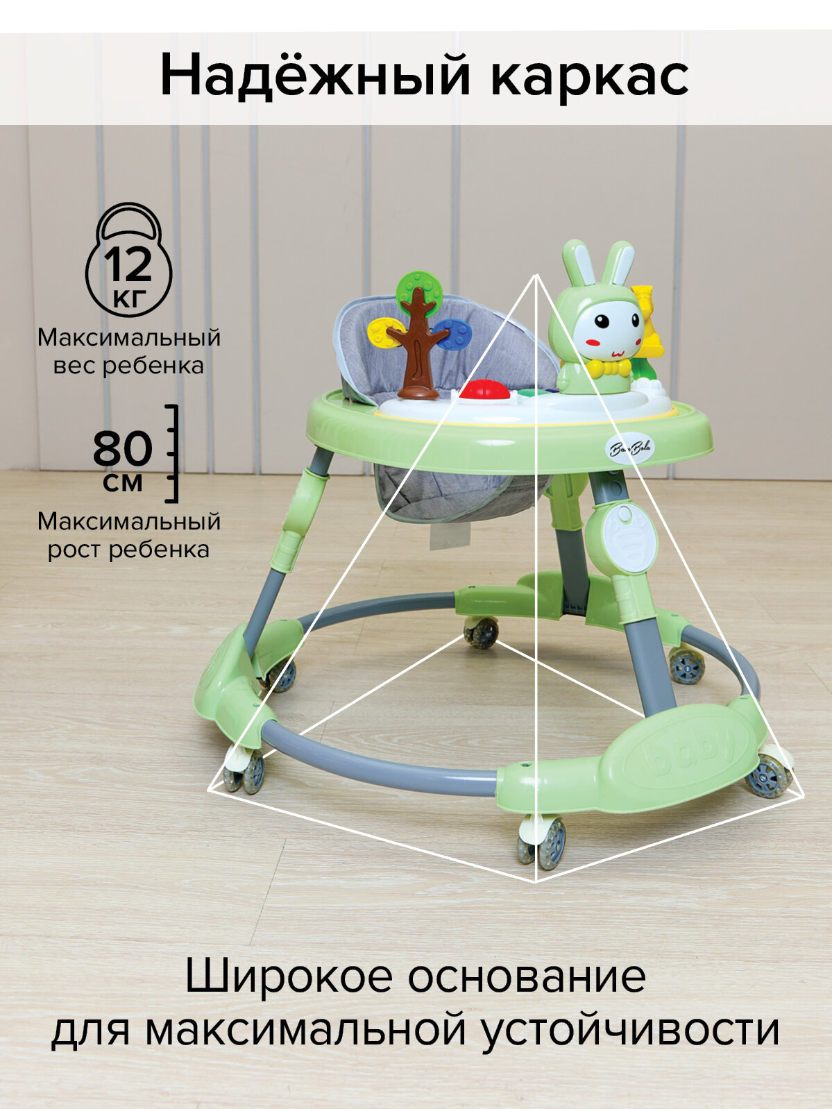 Ходунки Bambola Зайчик подготовят малыша к первым самостоятельным шагам, развивают координацию движений и помогают ребенку научиться держать равновесие. Имеют съемную музыкальную игровую панель со световыми и звуковыми эффектами. Мягкое, удобное сиденье. Ходунки легко регулируются в зависимости от роста ребенка.