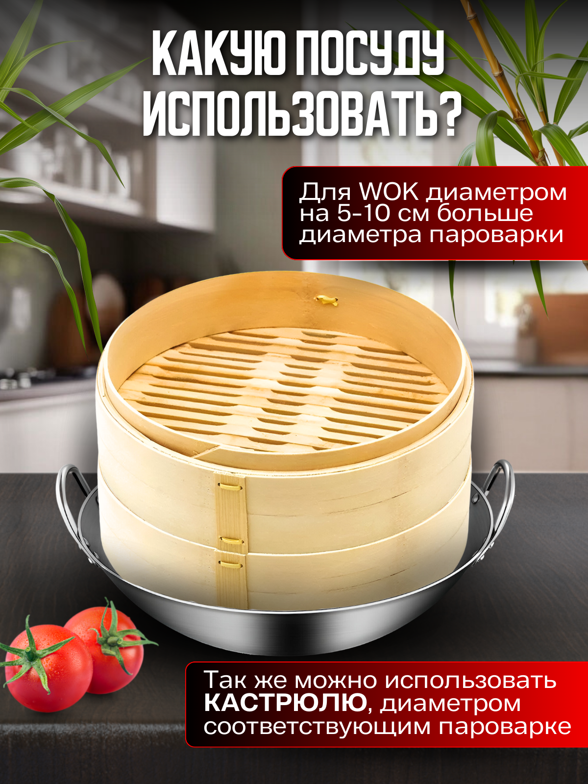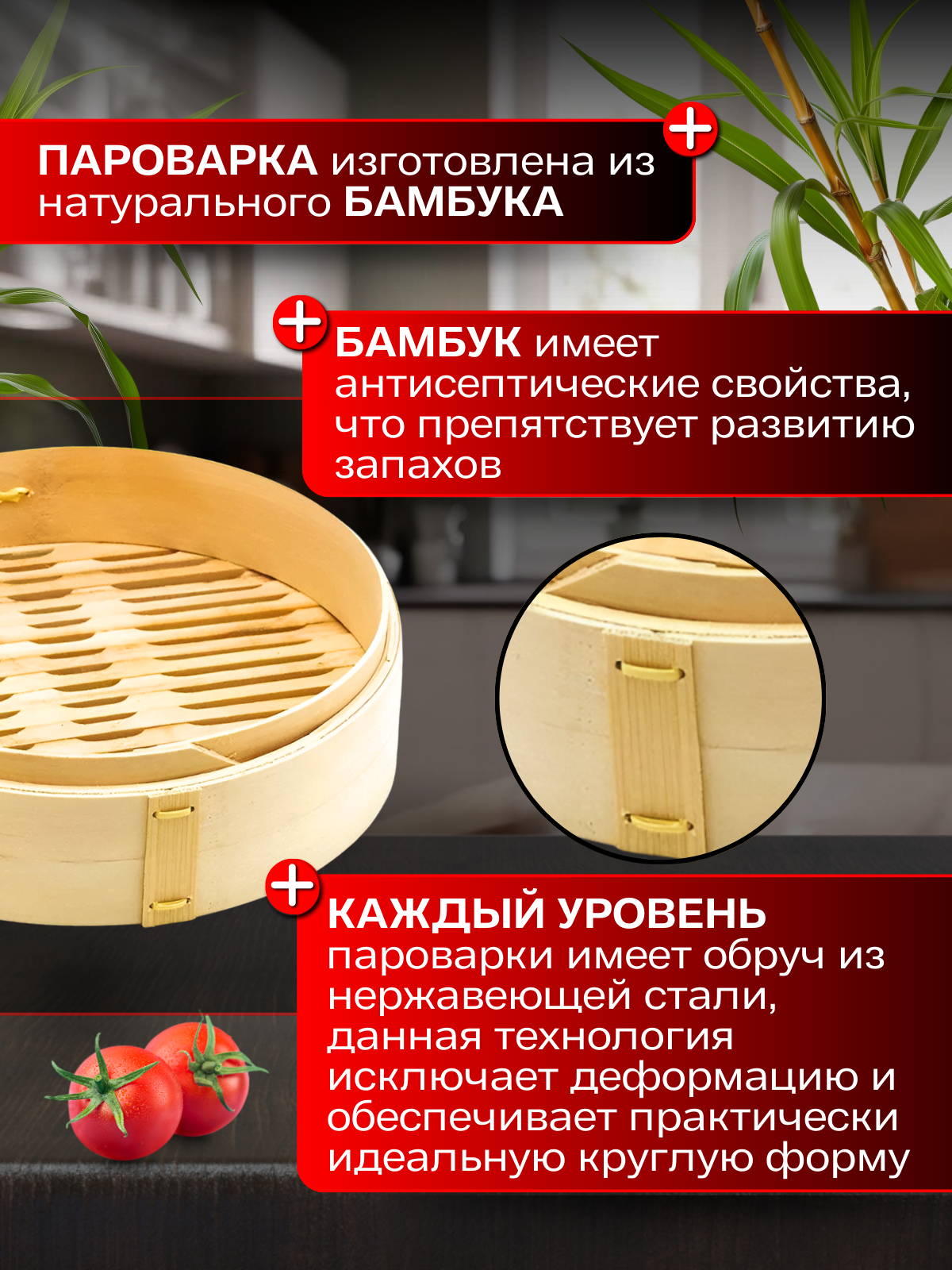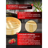 Купить Бамбуковая пароварка 18 см GetHof (2 уровня + крышка) BP-180 с доставкой по всей России.