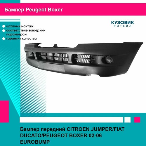 Бампер передний CITROEN JUMPER/FIAT DUCATO/PEUGEOT BOXER 02-06 EUROBUMP. Новая запчасть. Предназначена для замены старой или пришедшей в негодность детали вашего автомобиля. Изготовителем является торговая марка EUROBUMP. Запчасть продается с гарантией изготовителя в отношении качества и совместимости с автомобилем. Сделайте заказ сейчас и уже скоро вы сможете забрать его в ближайшем пункте выдачи в любом городе России. Остались вопросы? Мы работаем онлайн без выходных, напишите нам сообщение или позвоните и мы с удовольствием проконсультируем вас!