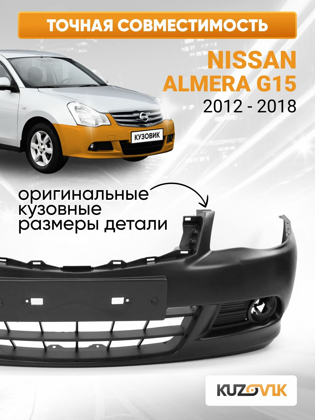 Бампер передний для Ниссан Альмера Джи 15 Nissan Almera G15 (2012-2018) в сборе с рамками птф и нижней решёткой, бампер Жи 15 новый под покраску заводское качество: сравнение цен, характеристики, фото, актуальное наличие и цены.