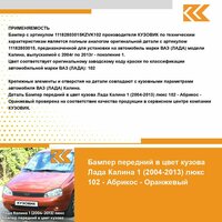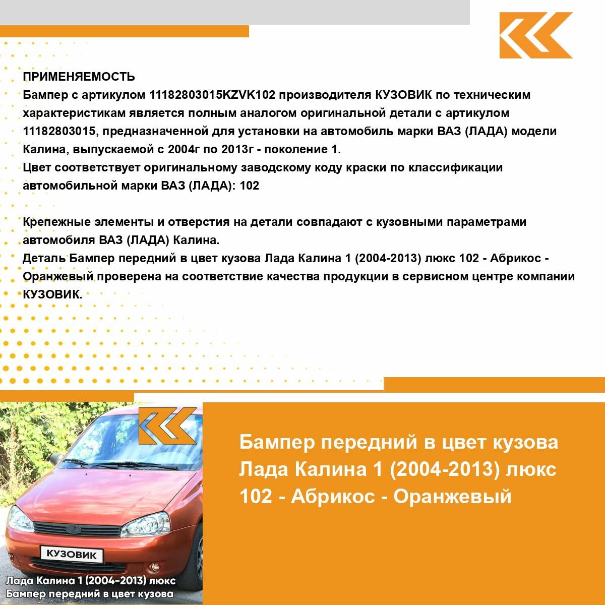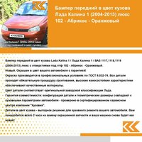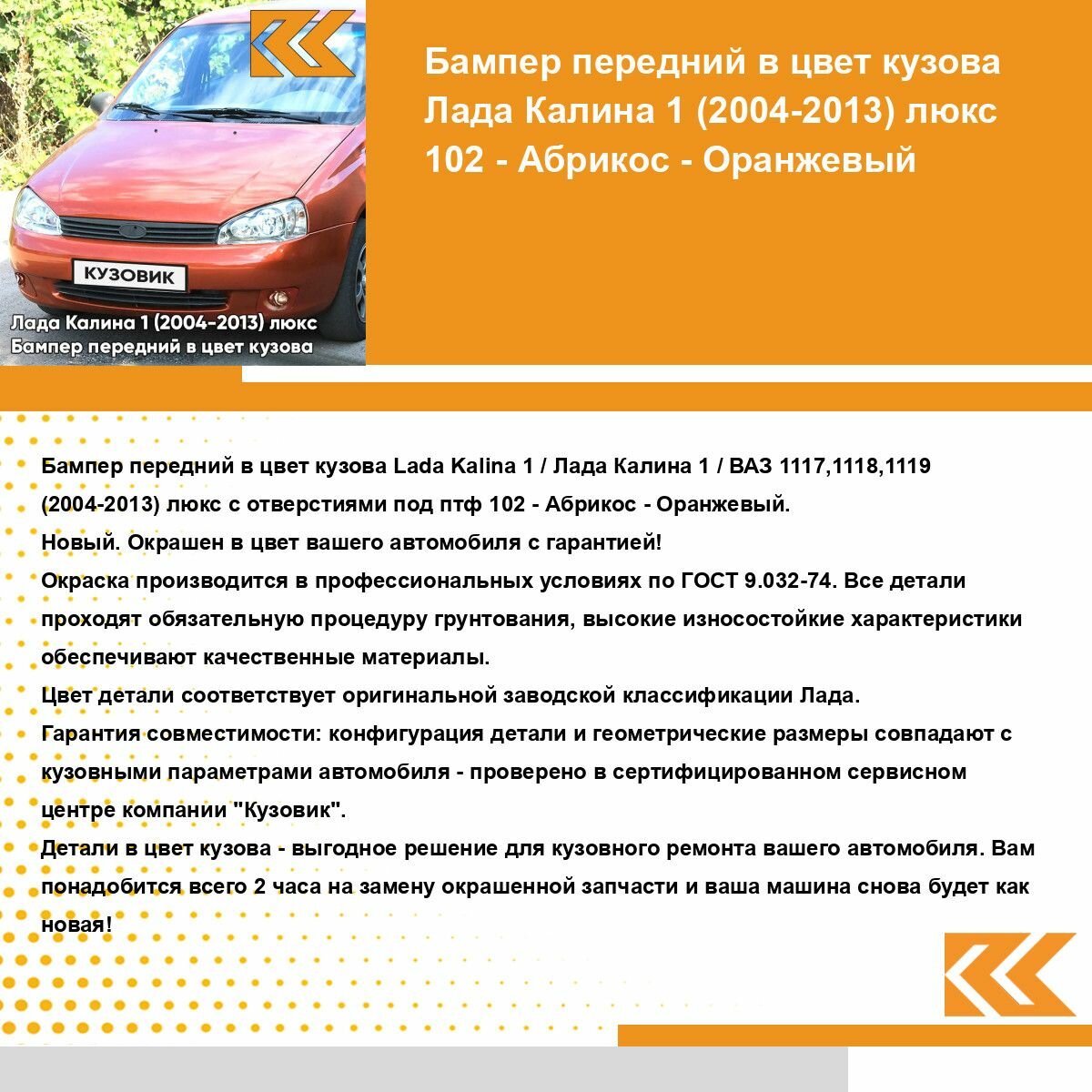 Бампер передний в цвет Лада Калина 1 (2004-2013) люкс 102 — Абрикос — Оранжевый: сравнение цен, характеристики, фото, актуальное наличие и цены.