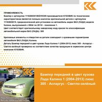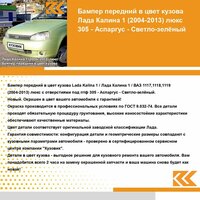 Бампер передний в цвет Лада Калина 1 (2004-2013) люкс 305 — Аспаргус — Светло-зелёный: сравнение цен, характеристики, фото, актуальное наличие и цены.