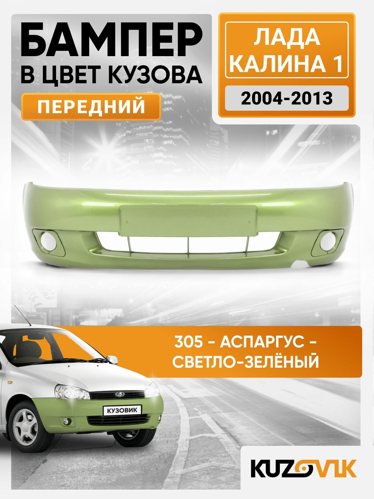 Бампер передний в цвет кузова для Лада Калина 1 люкс 305 — Аспаргус — Светло-Зеленый: сравнение цен, характеристики, фото, актуальное наличие и цены.