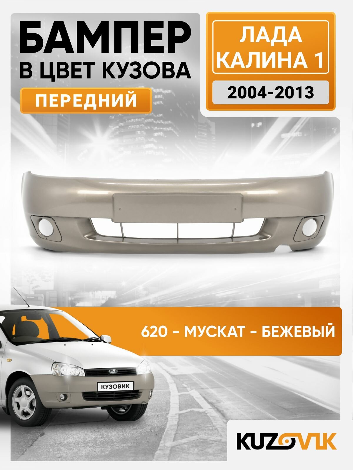Купить Бампер передний в цвет кузова для Лада Калина 1 люкс 620 — Мускат — Бежевый с доставкой по всей России.