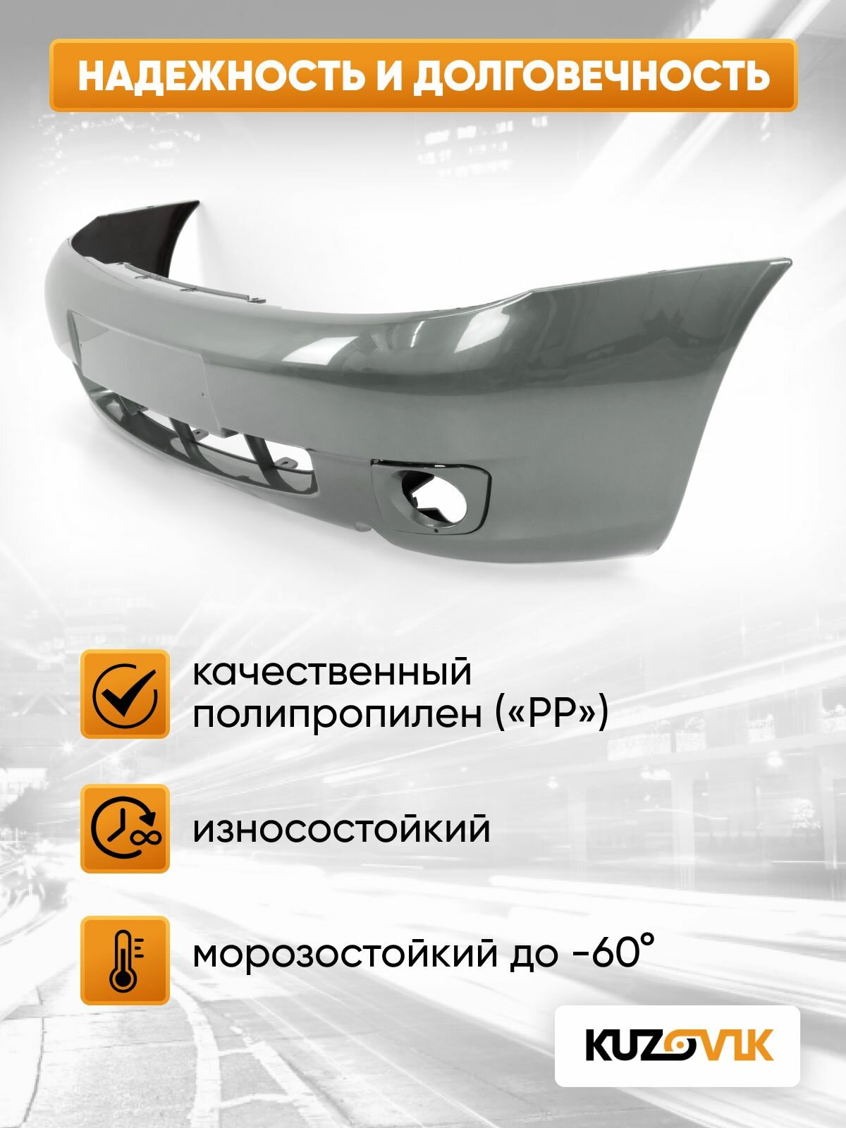Купить Бампер передний в цвет кузова для Лада Калина 1 люкс 630 — Кварц — Серый с доставкой по всей России.