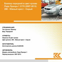 Купить Бампер передний в цвет кузова для Лада Приора 1 2170 (2007-2013) 290 — Южный крест — Серый с доставкой по всей России. Бампер передний в цвет кузова для Лада Приора 1 2170 (2007-2013) 290 — Южный крест — Серый: сравнение цен, характеристики, фото, актуальное наличие и цены.