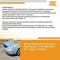Купить Бампер передний в цвет кузова для Лада Приора 1 2170 (2007-2013) 411 — Ладога — Голубой с доставкой по всей России. Бампер передний в цвет кузова для Лада Приора 1 2170 (2007-2013) 411 — Ладога — Голубой: сравнение цен, характеристики, фото, актуальное наличие и цены.