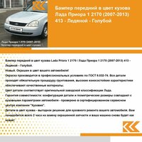 Купить Бампер передний в цвет кузова для Лада Приора 1 2170 (2007-2013) 413 — Ледяной — Голубой с доставкой по всей России. Бампер передний в цвет кузова для Лада Приора 1 2170 (2007-2013) 413 — Ледяной — Голубой: сравнение цен, характеристики, фото, актуальное наличие и цены.