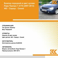 Купить Бампер передний в цвет кузова для Лада Приора 1 2170 (2007-2013) 483 — Сириус — Синий с доставкой по всей России. Бампер передний в цвет кузова для Лада Приора 1 2170 (2007-2013) 483 — Сириус — Синий: сравнение цен, характеристики, фото, актуальное наличие и цены.