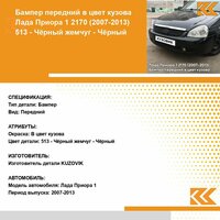 Бампер передний в цвет кузова Лада Приора 1 (2007-2013) 513 - Чёрный жемчуг - Чёрный. Новый бампер, окрашен в цвет вашего автомобиля с гарантией! Окраска кузовных деталей производится в заводских условиях по ГОСТ 9.032-74. Бампер в цвет кузова - выгодное решение для кузовного ремонта вашего автомобиля. Вам понадобится всего 2 часа на замену детали и ваша машина снова будет как новая! Цвет бампера соответствует оригинальному заводскому коду краски по классификации автомобильной марки лада: 513 - Чёрный жемчуг - Чёрный. Бампер передний с артикулом 217002803015KZVK513 производителя " Кузовик" по техническим характеристикам является полным аналогом оригинальной детали с артикулом 217002803015, предназначенной для установки на автомобиль марки Лада модели Приора, выпускаемой с 2007 г. по 2013 г. Крепежные элементы и отверстия на детали совпадают с кузовными параметрами автомобиля Лада Приора, совместимость проверена в сервисном центре компании " Кузовик". Если вы не нашли бампера в цвет для вашего автомобиля в каталоге, напишите нам, сделайте заявку на производство и уже в ближайшее время вы сможете купить его на Маркетплейсе. Остались вопросы? Мы онлайн! Напишите нам сообщение и мы с удовольствием проконсультируем вас!
