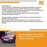 | Подробная комплектация | Бампер передний в цвет кузова ВАЗ 2114 2115 |