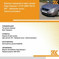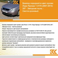 Купить Бампер передний в цвет Лада Приора 1 2170 (2007-2013) 257 — Звёздная пыль — Светло-розовый с доставкой по всей России. Бампер передний в цвет Лада Приора 1 2170 (2007-2013) 257 — Звёздная пыль — Светло-розовый: сравнение цен, характеристики, фото, актуальное наличие и цены.