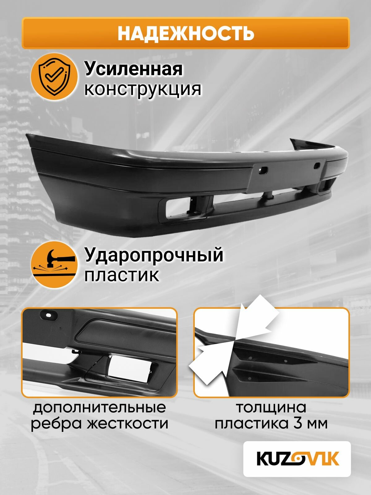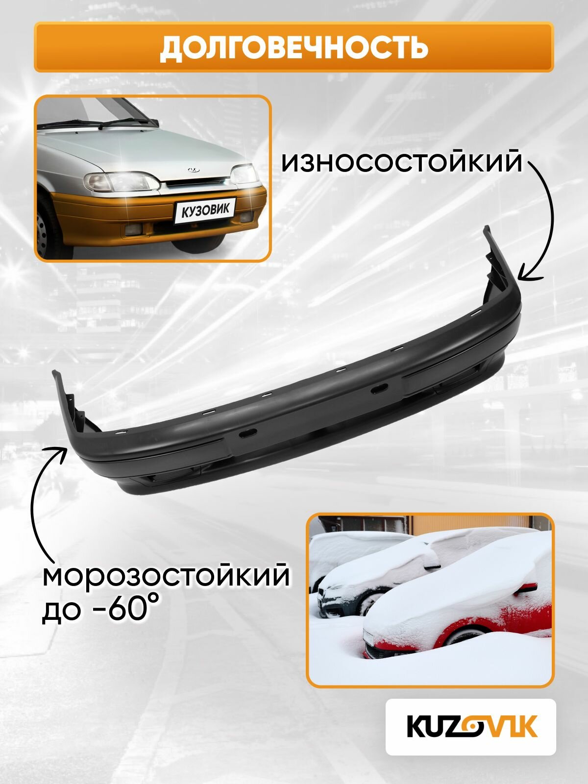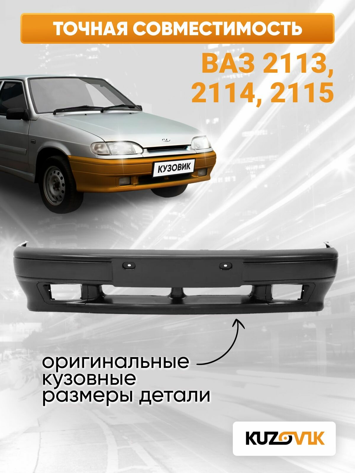 - Совместимость: Бампер полностью подходит для моделей ВАЗ 2113, 2114 и 2115, с точным совпадением крепежных элементов и отверстий по заводским параметрам.