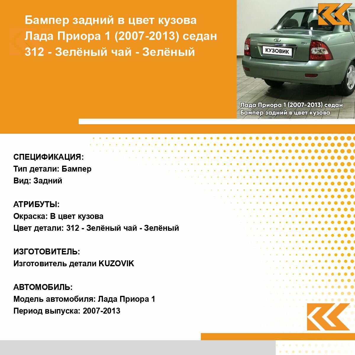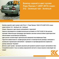 Бампер задний в цвет Лада Приора 1 (2007-2013) седан 312 — Зелёный чай — Зелёный: сравнение цен, характеристики, фото, актуальное наличие и цены.