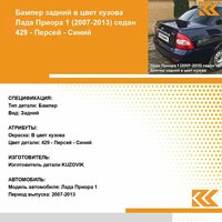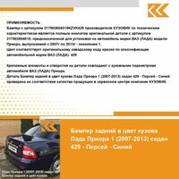 | Подробная комплектация | Бампер задний в цвет кузова для Лада Приора 1 седан |