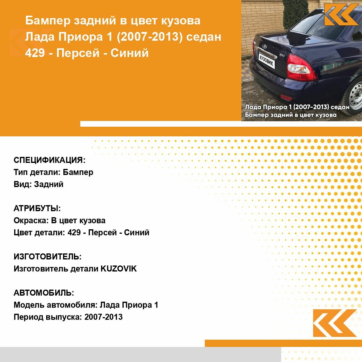 Бампер задний в цвет кузова для Лада Приора 1 (2007-2013) седан 429 — Персей — Синий: сравнение цен, характеристики, фото, актуальное наличие и цены.