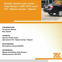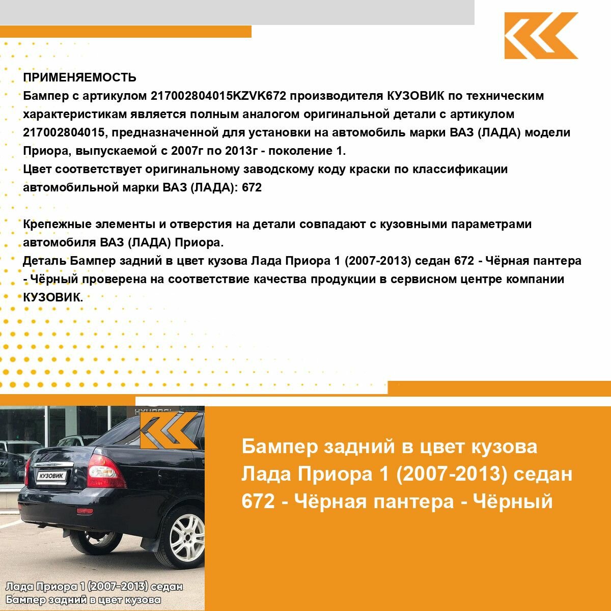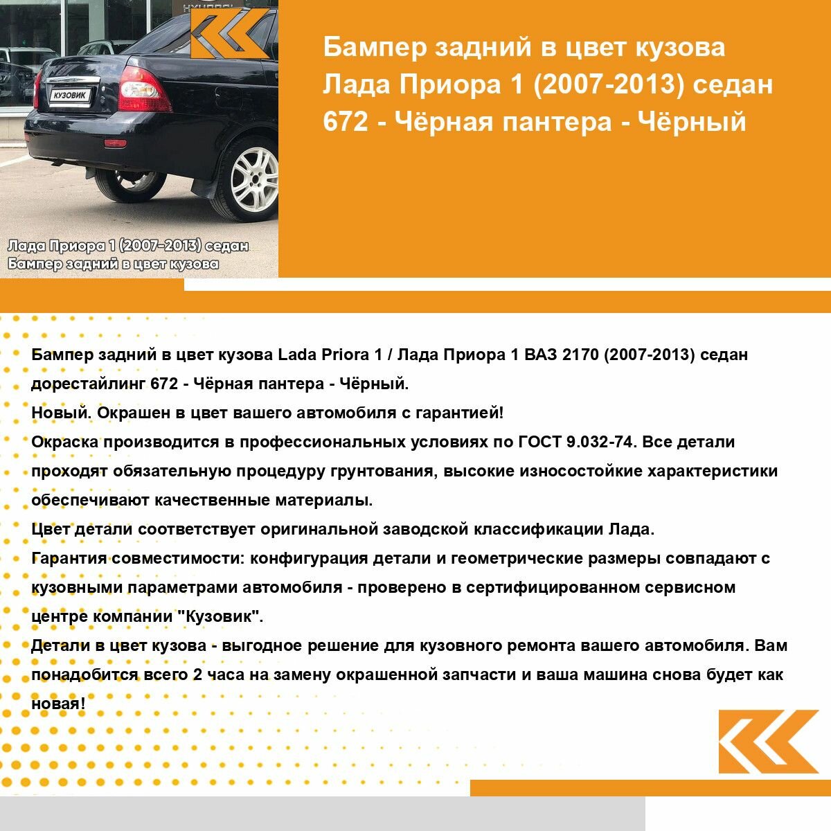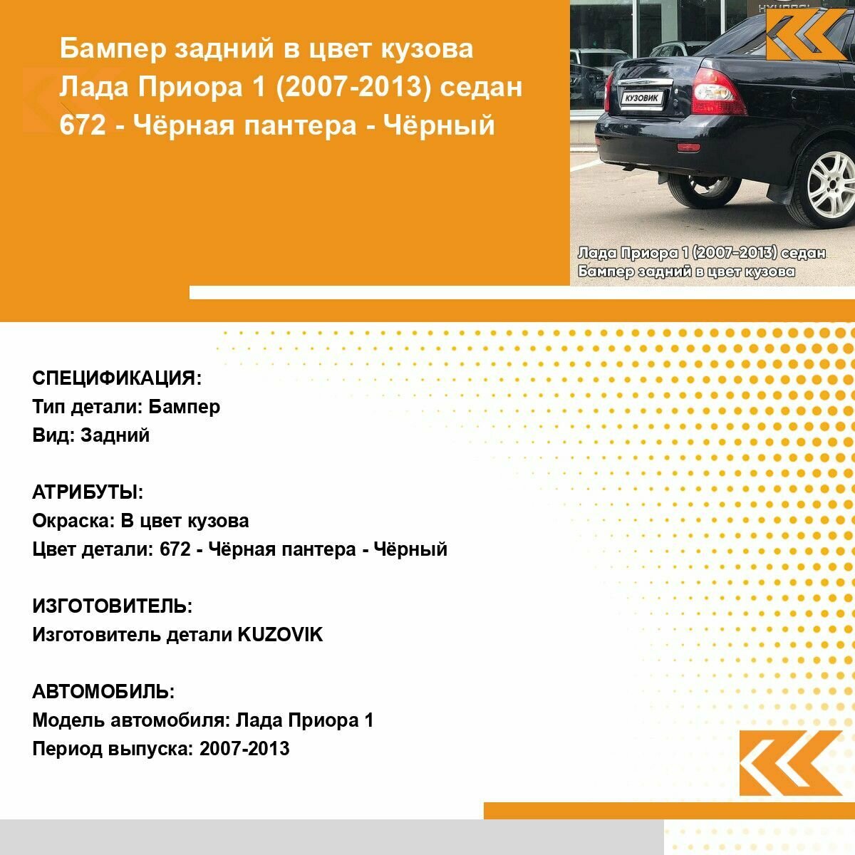 Бампер задний в цвет кузова для Лада Приора 1 (2007-2013) седан 672 — Черная пантера — Черный: сравнение цен, характеристики, фото, актуальное наличие и цены.