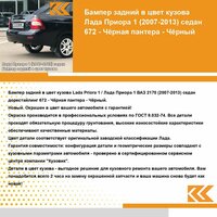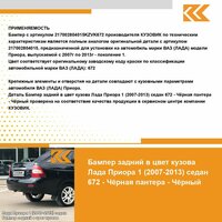 | Подробная комплектация | Бампер задний в цвет кузова для Лада Приора 1 седан |