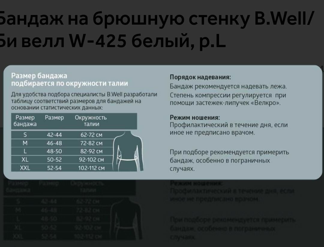 Для удобства подбора специалисты B.Well разработали таблицы соответствий размеров для бандажей на основании статистических данных. При подборе рекомендуется примерить бандаж, особенно в пограничных случаях.