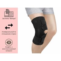 Разъемный ортез Ttoman KS-050 изготовлен из аэропрена-35% и хлопка-28%, усиленный съемными полицентрическими шарнирами. Имеет 2 ремня фиксации. Используется для послеоперационного восстановления, при нестабильности коленного сустава и несостоятельности так называемого капсульно-связочного аппарата, повреждения менисков, деформации колена (Х- , О-образные). Бандаж также может применяться для профилактики патологий голени. Наколенник дополнительно усилен шинами, благодаря чему полностью исключено возникновение боковых отклонений и переразгибаний сустава.