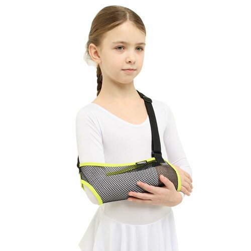 Бандаж «косынка» из сетчатого материала ограничивает подвижность плечевого сустава и обеспечивает комфортную поддержку верхней конечности. Основа анатомической формы с вырезом для локтя и двумя щелевыми рамками, по краям – мягкий кант. Ремень прикреплен к «локтевой» части основы. Изменение длины ремня осуществляется через щелевую рамку.