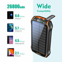 Банк питания xionel, 26800 mAh, PD18W, солнечная энергия, с фонариком