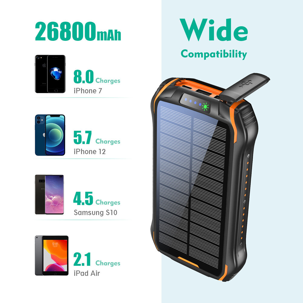 Банк питания xionel, 26800 mAh, PD18W, солнечная энергия, с фонариком: сравнение цен, характеристики, фото, актуальное наличие и цены.