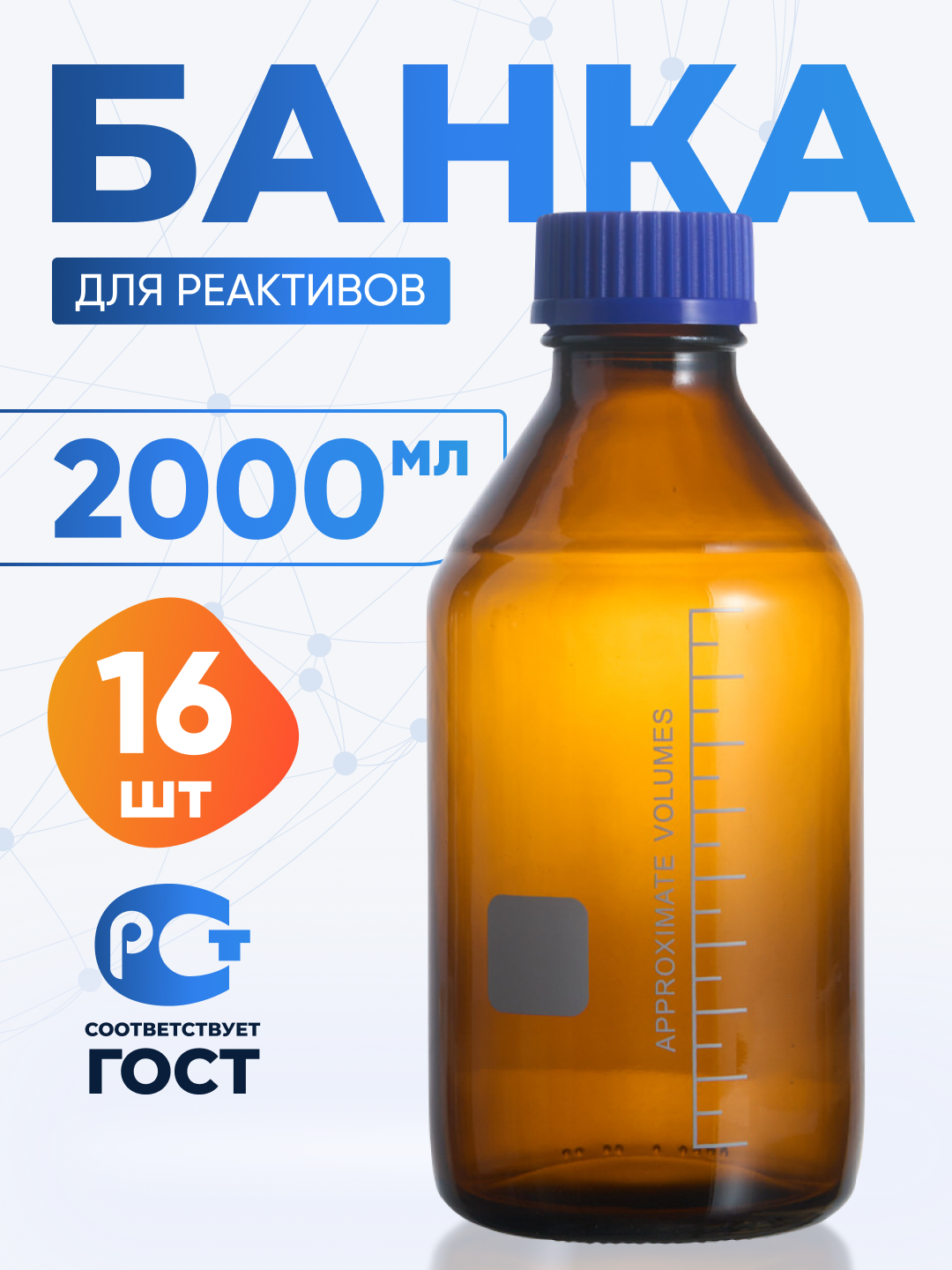 Купить Банка для хранения 2000 (16 шт) мл (из тёмного боросиликатного стекла Boro 3.3, с делениями) БТ-2000 с доставкой по всей России.