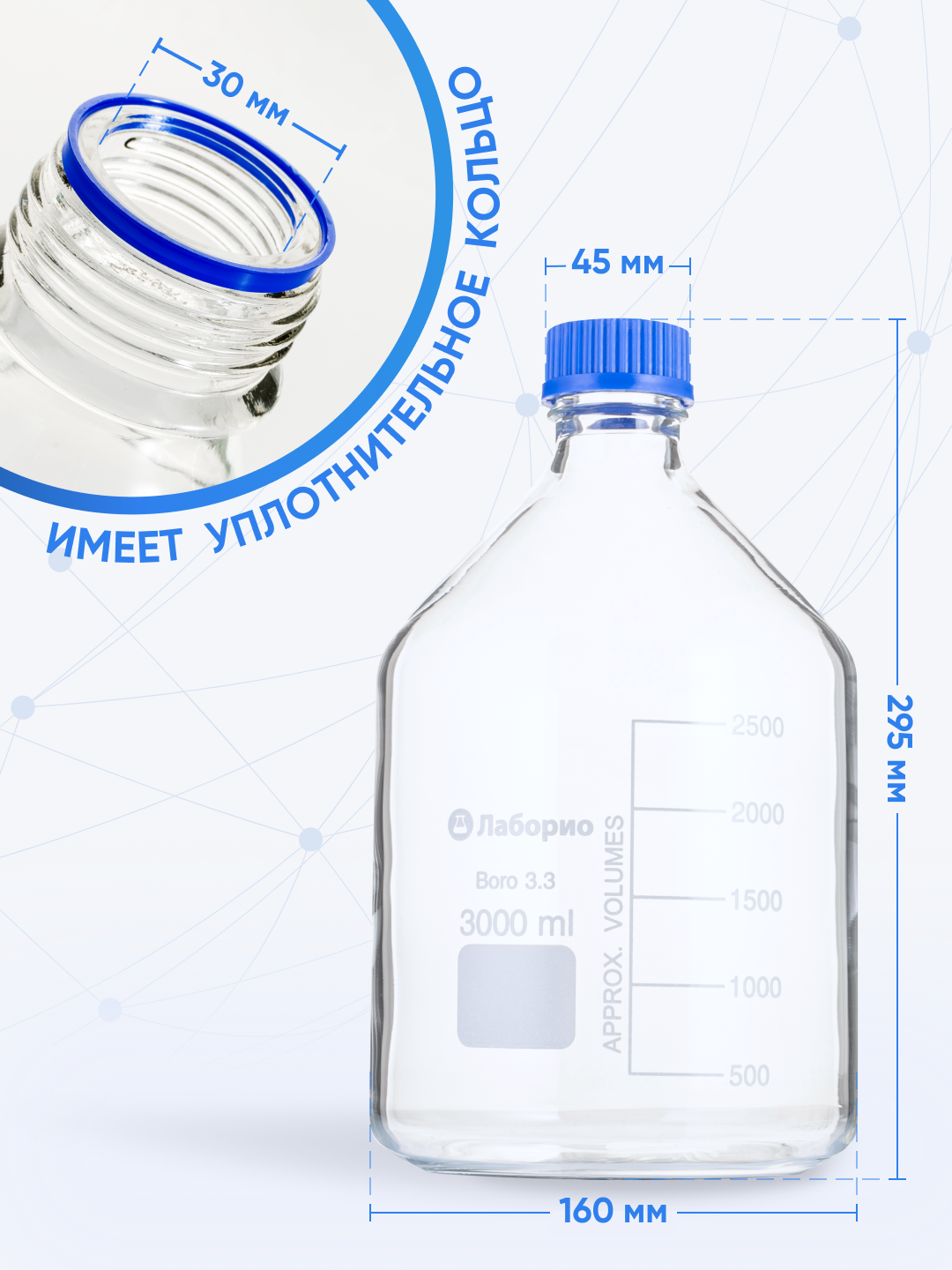 Купить Банка для хранения 3000 мл Boro 3.3 (из светлого стекла, с делениями, боросиликатное стекло) БС-3000 с доставкой по всей России.