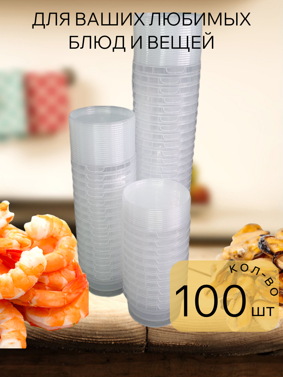 В упаковке набор круглых контейнеров с крышкой из 100 шт,