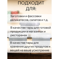 В одноразовых пластиковых контейнерах удобно брать еду с собой на обед, ланч или просто перекус. Крышка у круглого контейнера плотно и герметично прилегает, что позволяет безопасно перевозить супы и любые жидкости.