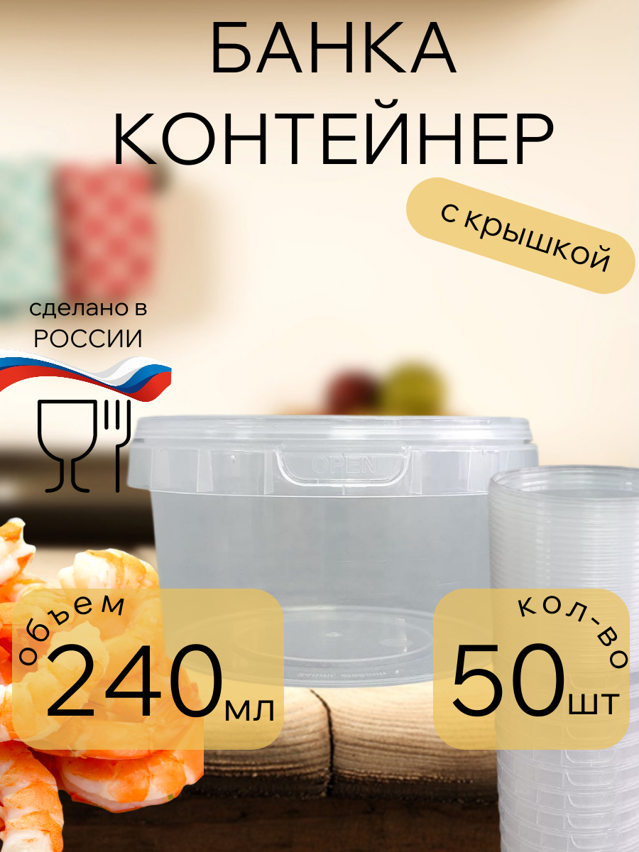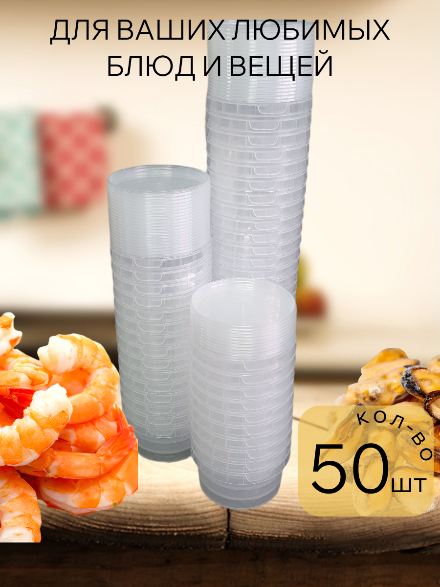 В упаковке набор круглых контейнеров с крышкой из 50 шт,