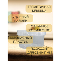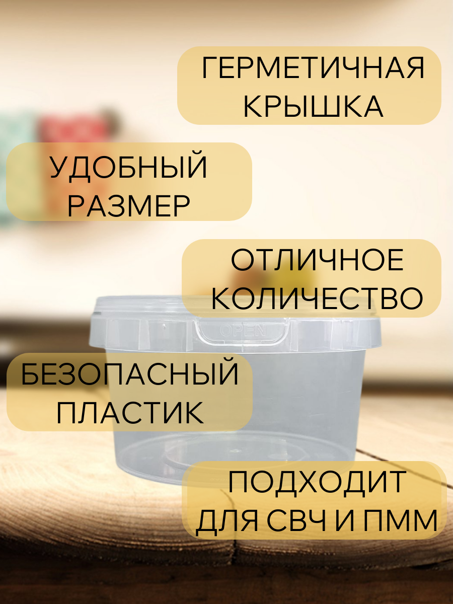 В одноразовых пластиковых контейнерах удобно брать еду с собой на обед, ланч или просто перекус. Крышка у круглого контейнера плотно и герметично прилегает, что позволяет безопасно перевозить супы и любые жидкости.