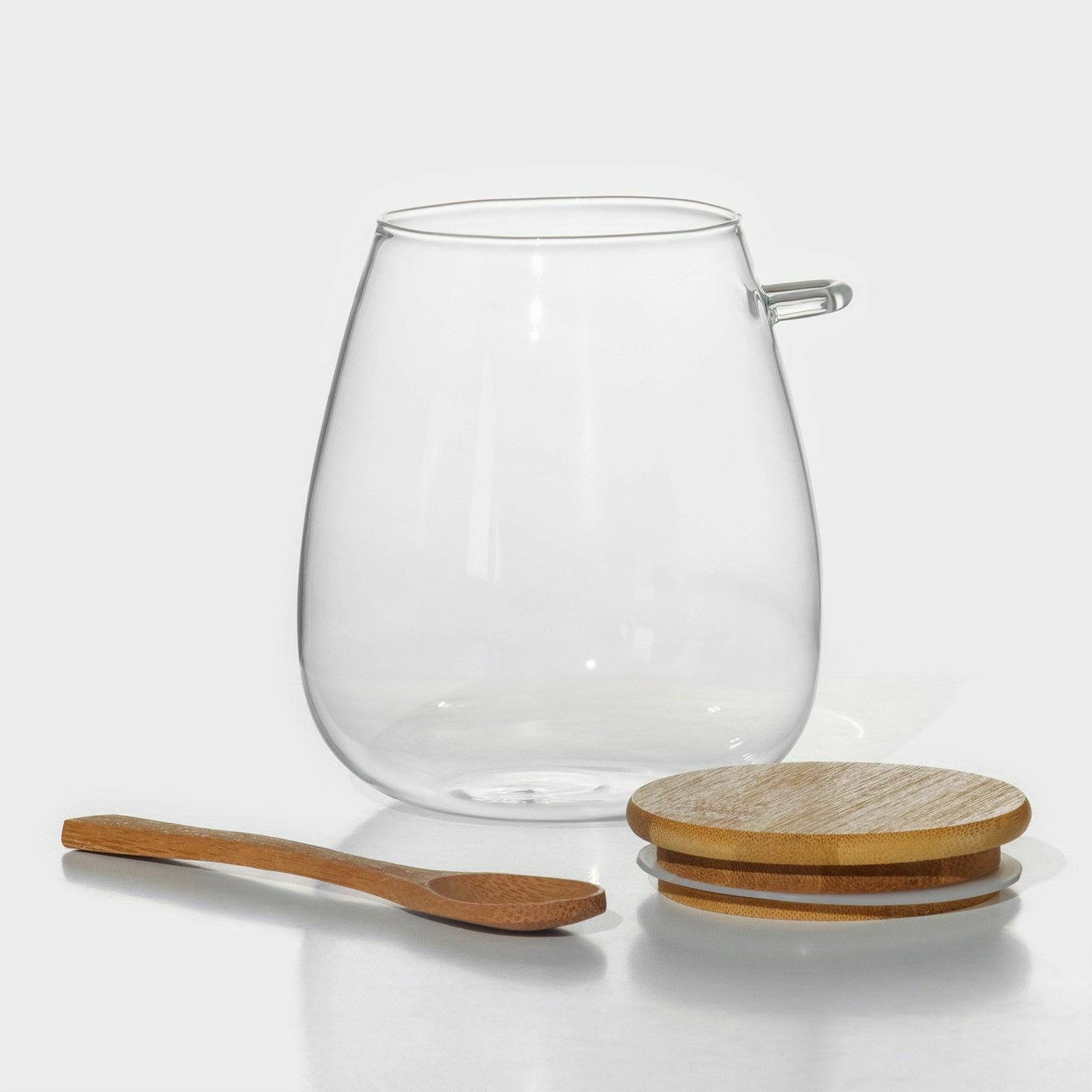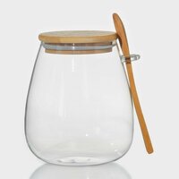 Купить Банка для хранения с ложкой Эко , 1 л, 12 14.4 см, с бамбуковой крышкой, стекло, прозрачная с доставкой по всей России.