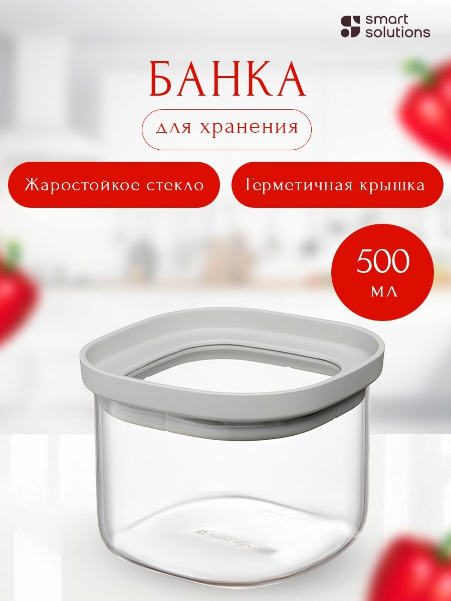 Банка стеклянная с силиконовой крышкой от бренда Smart Solutions обеспечит удобное и практичное хранение различных продуктов – крупы, макаронных изделий, сухофруктов, орехов, приправ и многого другого. Выполненная из прозрачного стекла, она прекрасно сочетается с посудой и аксессуарами из любых материалов, а также вы всегда видете, когда приходит время пополнять запасы.