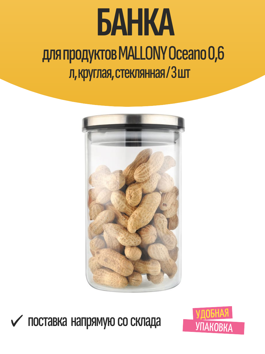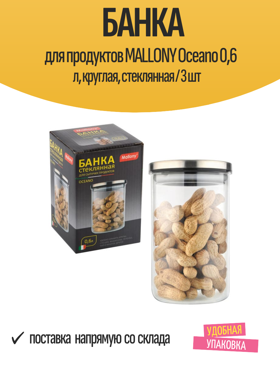 Купить Банка для продуктов MALLONY Oceano 0,6 л, круглая, стеклянная / 3 шт с доставкой по всей России. Банка для продуктов MALLONY Oceano 0,6 л, круглая, стеклянная / 3 шт: сравнение цен, характеристики, фото, актуальное наличие и цены.