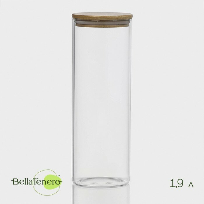 Купить Банка для сыпучих BellaTenero «Эко», 1.9 л, 10×28.5 см, с бамбуковой крышкой, стекло, прозрачная с доставкой по всей России.