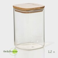 Купить Банка для сыпучих BellaTenero «Эко. Квадратная», 1.2 л, 10×15.5 см, с бамбуковой крышкой, стекло, прозрачная с доставкой по всей России.