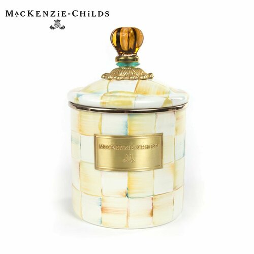 Банка для сыпучих продуктов 1,1 литра, MacKenzie-Childs, Parchment Check, жёлто-белая, клетка, ручная роспись, эмаль, бронза, премиум посуда, емкость для хранения с крышкой: сравнение цен, характеристики, фото, актуальное наличие и цены.
