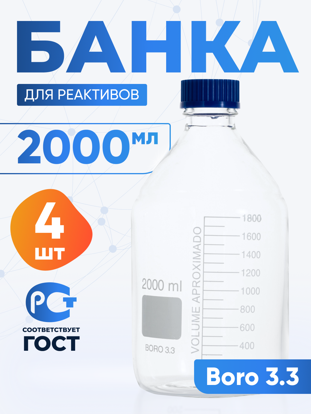 | Подробная комплектация | Банка лабораторная 2000 мл из светлого стекла, с делениями и навинчивающейся полипропиленовой крышкой, боросиликатное стекло) БС-2000 - 4 шт |