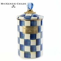 Купить Банка для сыпучих продуктов 1,8 литра, MacKenzie-Childs, Royal Check, синяя, клетка, ручная роспись, эмаль, бронза, премиум посуда, емкость для хранения с крышкой с доставкой по всей России.