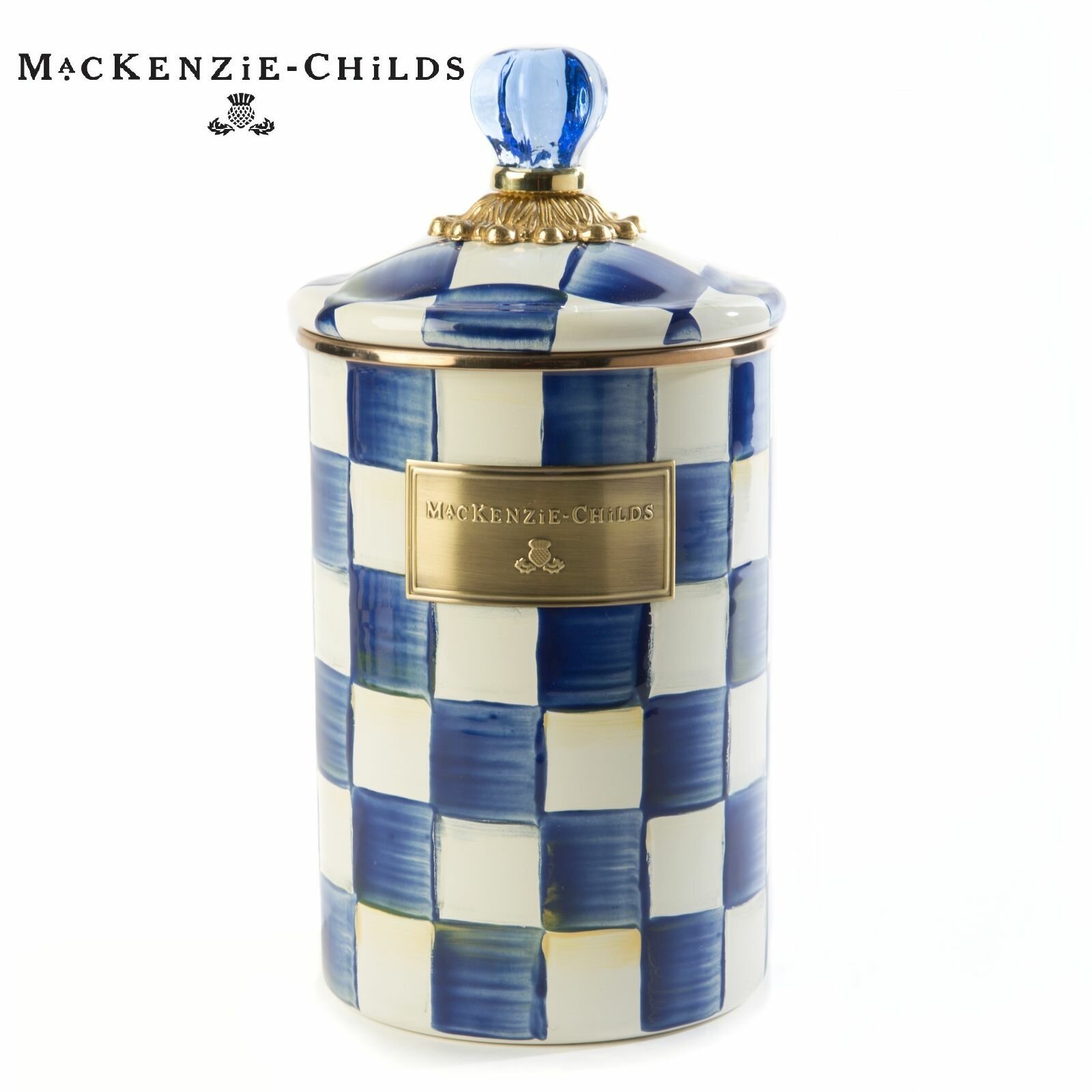 Банка для сыпучих продуктов 1,8 литра, MacKenzie-Childs, Royal Check, синяя, клетка, ручная роспись, эмаль, бронза, премиум посуда, емкость для хранения с крышкой: сравнение цен, характеристики, фото, актуальное наличие и цены.
