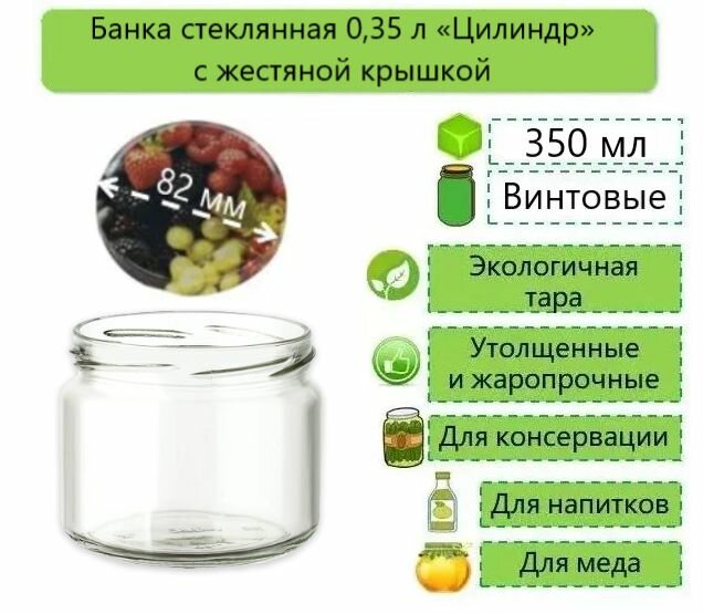 Представляем вашему вниманию набор из стеклянных банок объемом 0,35 литра с крышками. Наши банки изготовлены из прозрачного стекла, которое не впитывает запахи и вкусы, не мутнеет со временем и устойчиво к высоким температурам до 200°C, что делает их идеальными для автоклава, консервирования и хранения любых пищевых продуктов. Крышки диаметром 82 мм обеспечивают герметичность и надежность при хранении продукции. Банки и крышки упакованы в воздушно-пузырчатую пленку и несколько слоев картона, что гарантирует их безопасность при транспортировке. Стеклянные банки можно использовать многократно, что экономит ваши средства и способствует долгосрочному хранению продуктов. Наш товар проверен временем и имеет все необходимые сертификаты. Особенности: