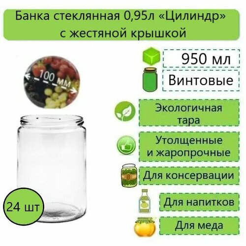 Банка стеклянная прямая, Цилиндр, 1л (950мл), твист-офф, d-100 мм (ТО-100), 24 шт. (с жестяной крышкой): сравнение цен, характеристики, фото, актуальное наличие и цены.