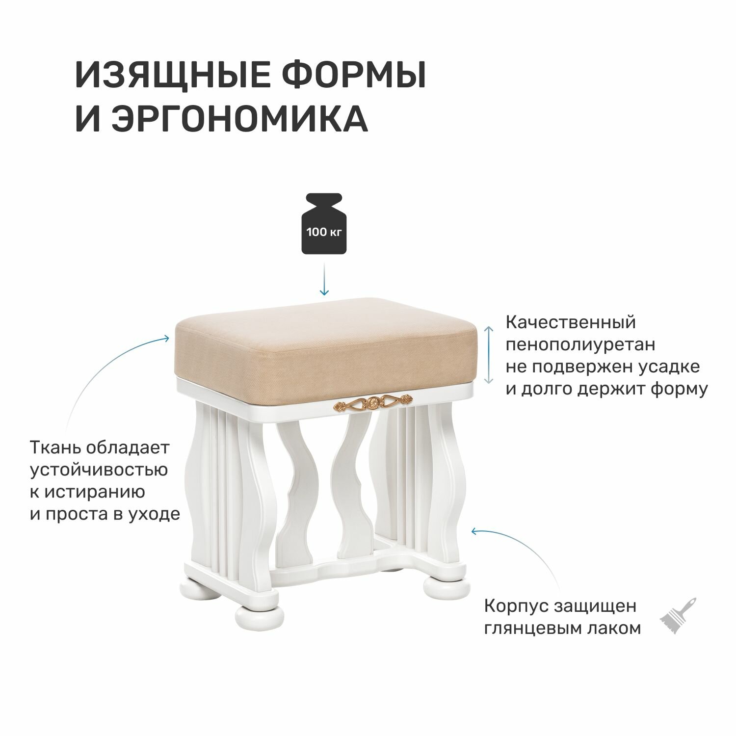 Максимальная нагрузка на банкетку составляет 100 кг, что делает ее подходящей для использования как взрослыми, так и детьми.
