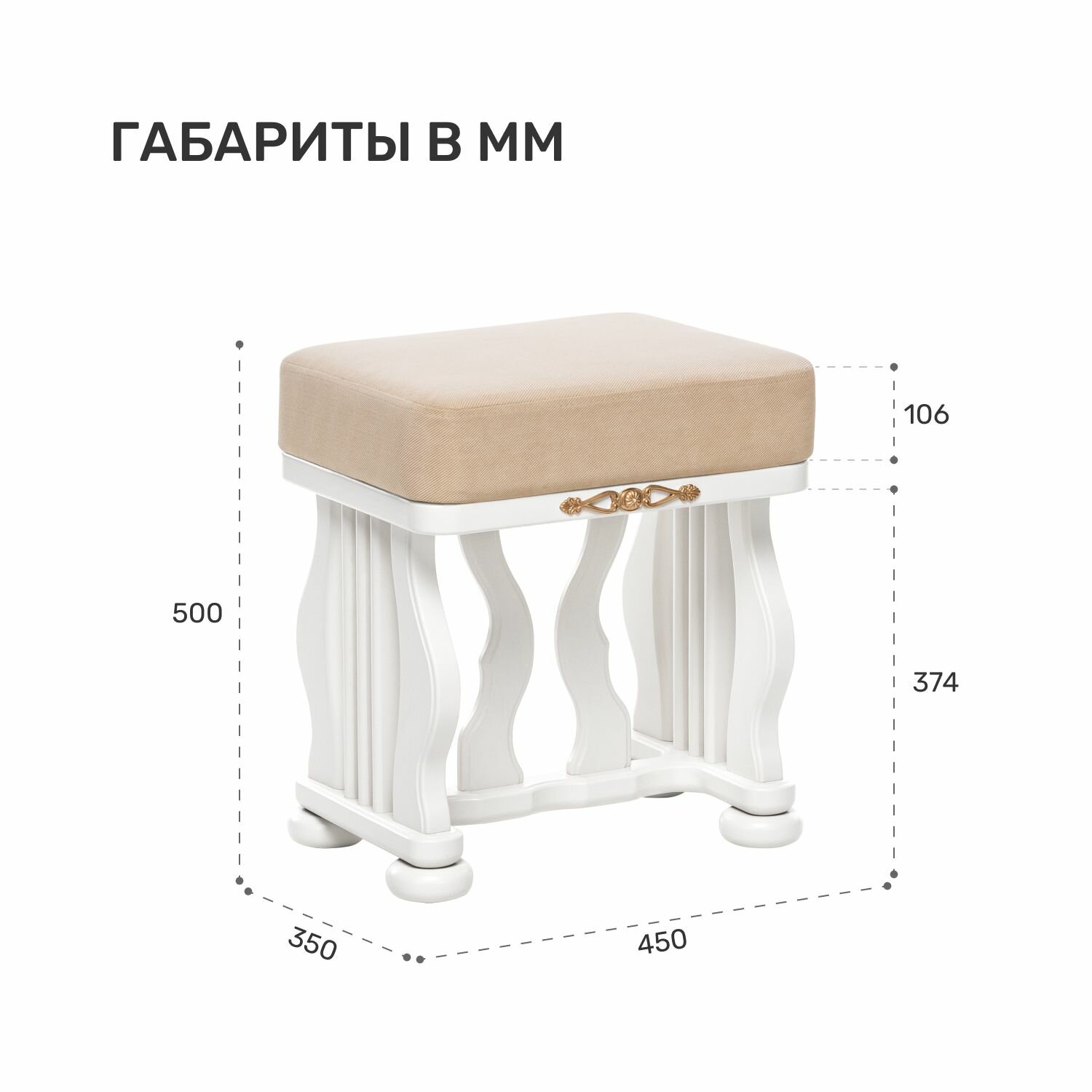 Высота от пола до основания (ножки) — 374 мм Толщина мягкой части ~ 106 мм (расчетная величина, в реальности меньше из-за натяжки обивки)