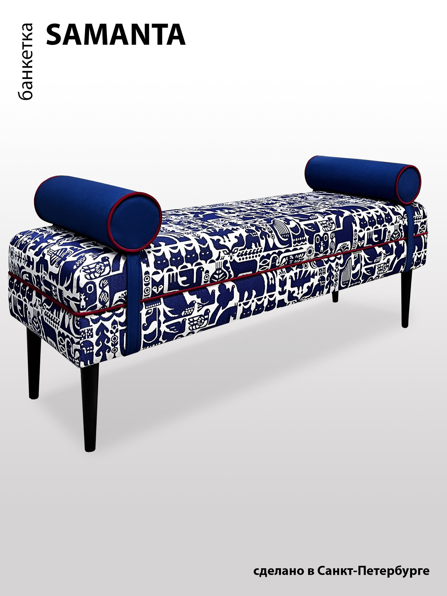 Банкетка BORDADO SAMANTA, мебельная фанера, велюр/гобелен, принт «финский» синий, съемные валики.: сравнение цен, характеристики, фото, актуальное наличие и цены.